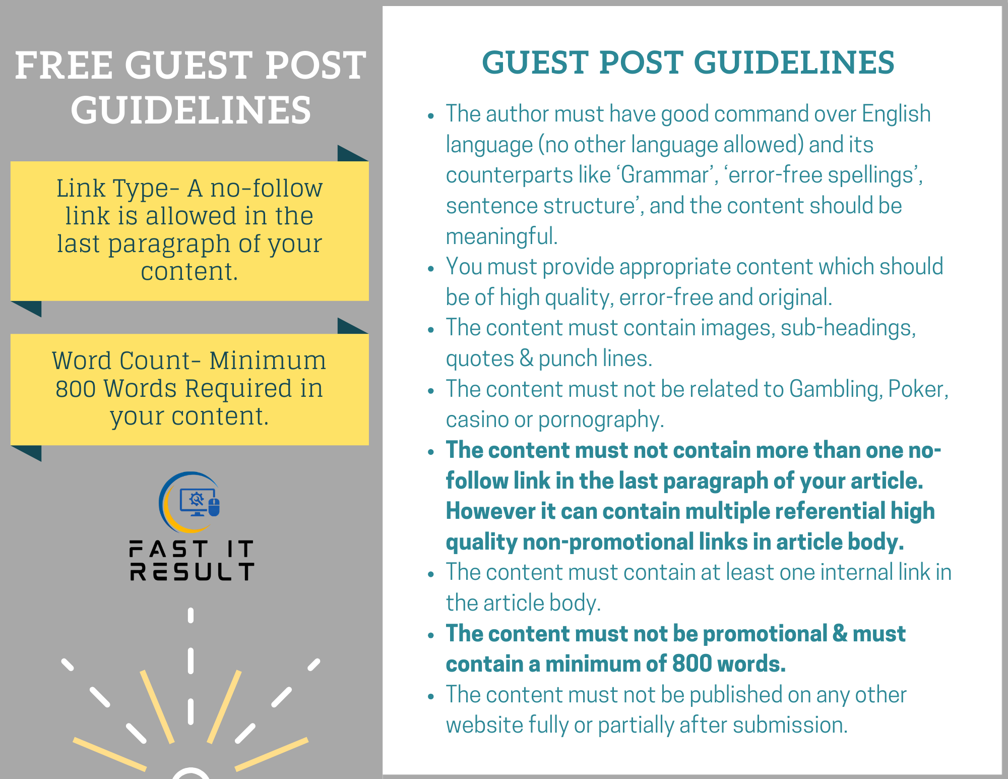 Please send an email to editor@fastitresult.com to submit your article under the subject line of “Guest Posting”. Please ensure that the article chosen by you is not published anywhere else as we only publish original content.